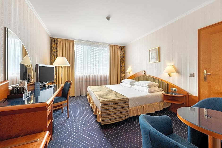 This double room offers a welcome retreat after a busy day in Prague. Guests in Deluxe Rooms benefit from access to our Top Deck facilities including the gym and pool, plus complimentary Wi-Fi, air conditioning and more.